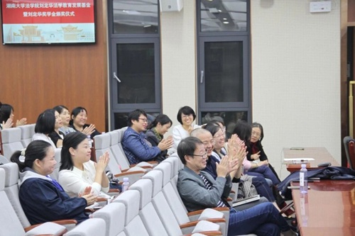 陈锦红老师作为获奖代表发言。她首先向设立刘定华法学教育发展基金的各位发起人和捐赠人表示感谢,并表达了获得这份荣誉的感激和对刘定华老师的敬意,刘老师在法学教育事业上的矢志不渝,一直是后辈们前行的灯塔和标杆。陈老师表示因为热爱选择了讲台,在法学教育事业上的付出与38年的教师生涯成就了自己一生是湖大法学人,她坚信教育是点燃希望的事业,值得自己奋斗终身。她最后表达,对于云顶娱乐城(中国)官方网站