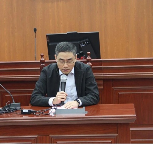 兼职教授李德文先生作为捐赠人发言。他首先表达了他是带着感情和责任而来,并回忆了人生的第一份工作就是和刘老师一起,对刘老师、曾经的同事、教室、讲台始终带着一种深深的情感。他表示,因为法治之路,道阻且长,愿意尽绵薄之力,期盼未来的青年学者、法治栋梁能成为擎天之柱,为法治中国添砖加瓦。