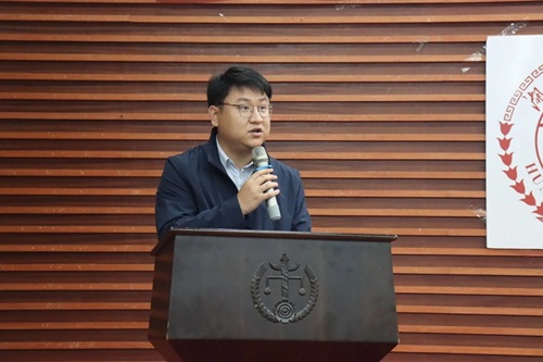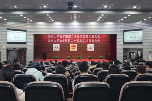 曹晓军老师代表湖南大学第二十二届团委委员向大会做题为《挺膺担当建新功,砥砺奋进向未来,团结带领全院团员青年踔厉奋发、勇毅前行,努力成长为堪当民族复兴重任的时代新人》的工作报告。报告回顾了二十二届团委在夯实团员信念,厚植实践根基,讲好学院故事,畅通信息渠道等方面取得的成绩与经验,同时认识到共青团工作任重道远,院团干部的能力素质和工作状态仍需提升。接着,他对接下来一年的工作进行了规划和展望,明确未来将聚焦组织建设规范化、实践品牌特色化、宣传内容精品化,持续推进“三会两制一课”落地,深化“岳麓法青”实践品牌,提升宣传矩阵影响力,以“敢担当、善作为”的作风,团结团员青年成长为堪当民族复兴重任的时代新人。