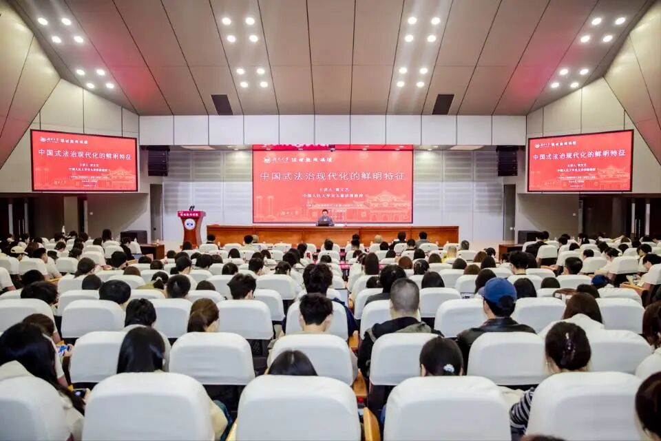 2026年4月11日上午,中国人民大学吴玉章讲席教授、中国法学会法治研究所所长、《中国法学》杂志社总编辑黄文艺教授做客经世致用讲坛,在湖南大学逸夫楼报告厅作“中国式法治现代化的鲜明特征”主题报告。本场报告会为“校庆系列学术报告”之一。校党委常委、校长助理许和连出席并致辞。